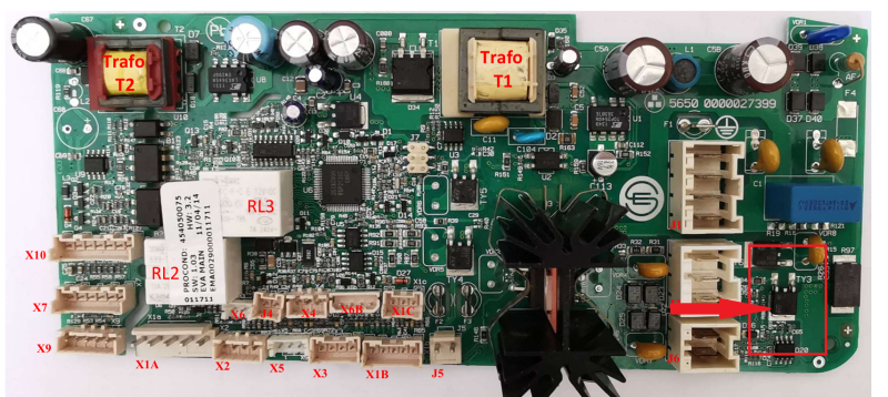 7. Der TRIAC im roten Quadrat ist derjenige, der für die Steuerung des Mahlwerks verantwortlich ist. Ist er defekt, muss er ausgetauscht werden.