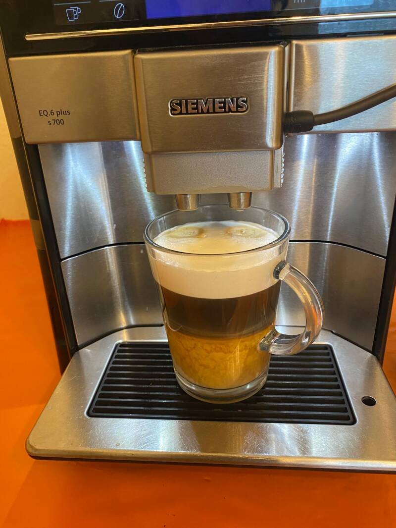 Zum Abschluss der technischen Prüfung bereiten wir einen ersten Kaffee mit Milchschaum zu – direkt aus dem frisch generalüberholten Gerät.