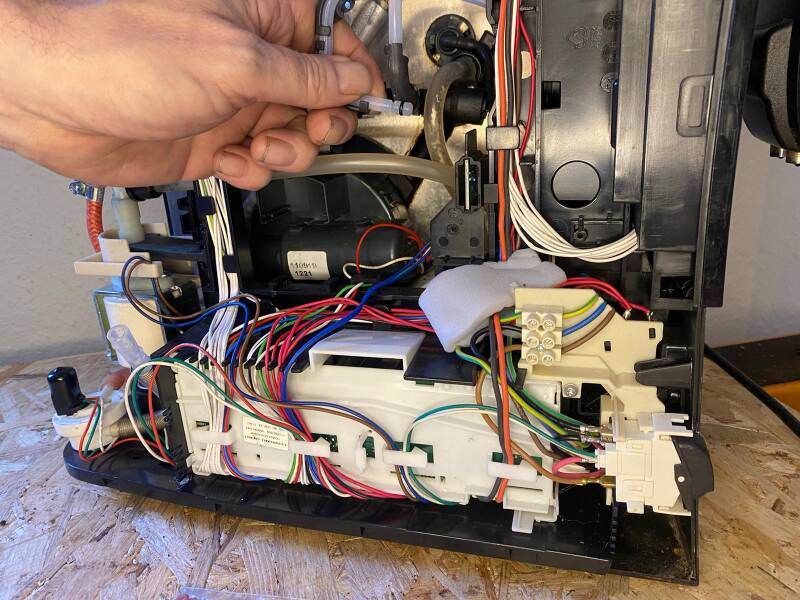 Dann habe ich auch den Antrieb, an einem Netzteil angeschlßen, der Antrieb fährt auch, also muste das Mahlwerk und der Antreib, für diue Brüheinheit, in ordung sein.