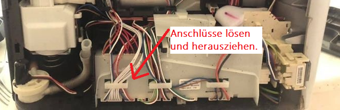 5.Von der Steuerplatine alle Stecker abziehen und vorsichtig herausziehen. Am besten ein Bild davon machen (ein Vertauschen ist zwar nicht möglich, aber es erspart später beim Zusammenbauen langes Suchen).